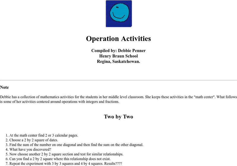 Students will be able to practice their integer and fractions skills by completing hands-on activities. Some examples are crisp cookies, fracturing fraction, and two by two.