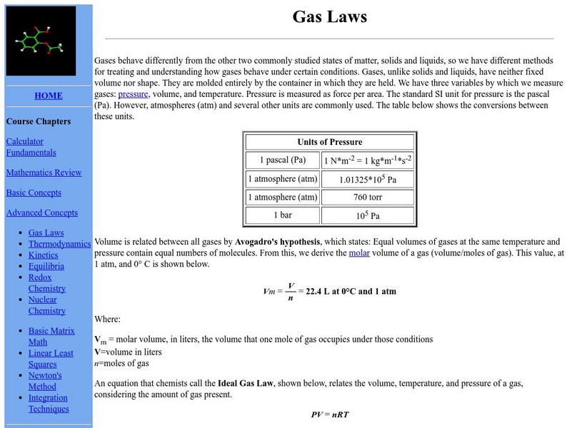An excellent site for understanding and applying the ideal gas law. The combined and other variations of the ideal gas law are derived. There are sample application problems with an abbreviated method of solving the problems.