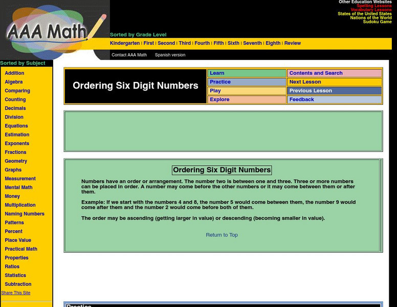 This site explains how to order numbers in ascending or descending order. The site provides games and exercises to practice the skill.