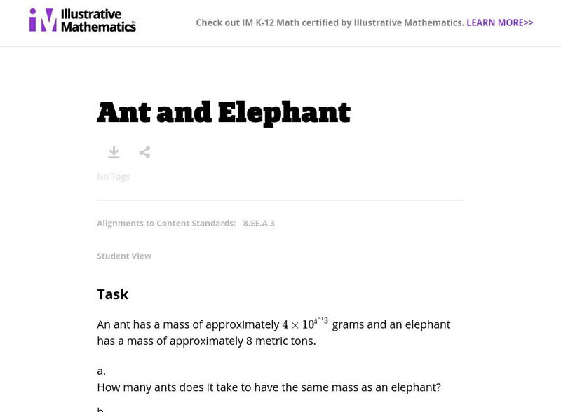 Illustrative Mathematics: 8.ee Ant and Elephant