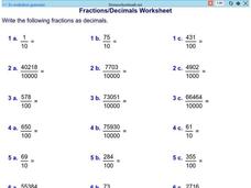 In this fractions to decimals instructional activity, learners convert a set of 10 decimal numbers to fractions. A reference website is given for additional resources.