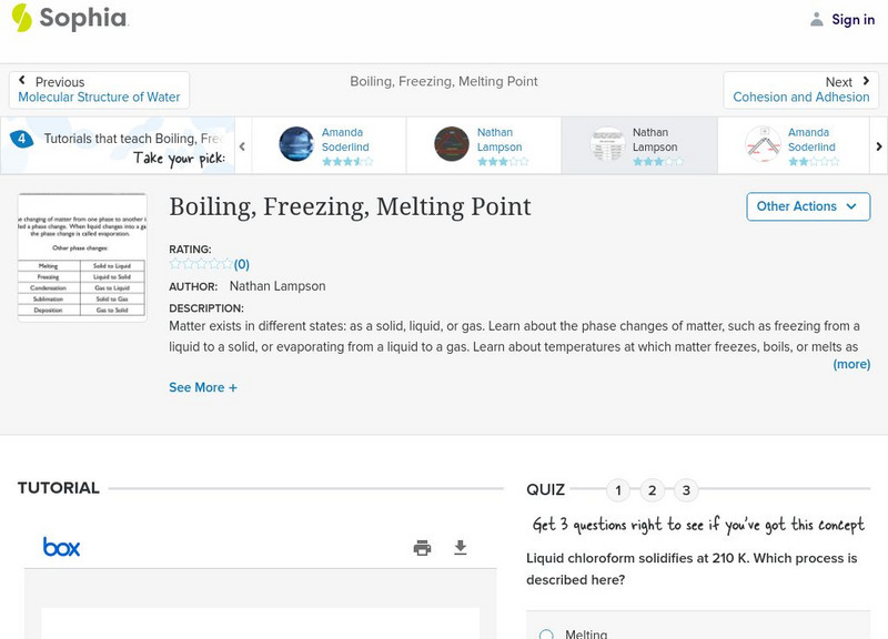 Sophia: Boiling, Freezing, Melting Point: Lesson 1
