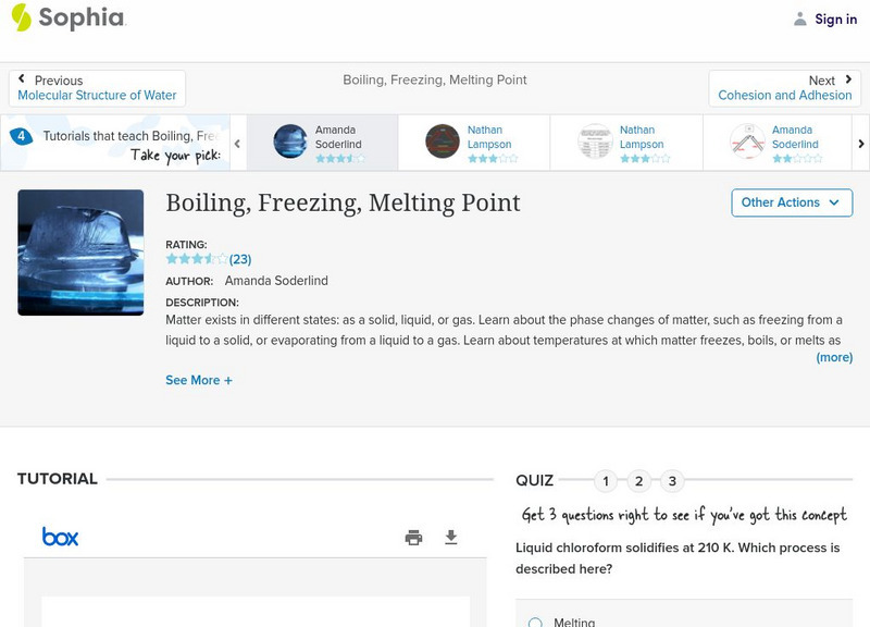 Sophia: Boiling, Freezing, Melting Point: Lesson 4