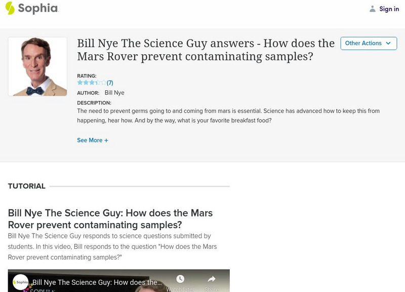 Sophia: Bill Nye Answers: How Does the Mars Rover Prevent Contaminating Samples?