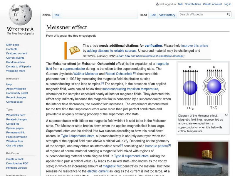 Walther Meissner discovered while working with Robert Ochsenfeld that superconductors expel relatively weak magnetic fields from their interior and are strongly diamagnetic. This phenomenon, commonly known as the Meissner effect or the...