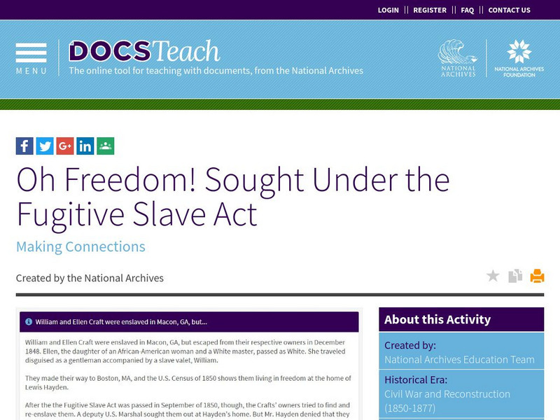 Docsteach: Oh Freedom! Sought Under the Fugitive Slave Act