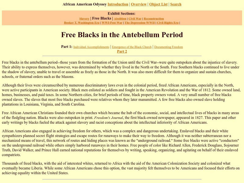 Loc: African American Odyssey: Free Blacks in Antebellum Period