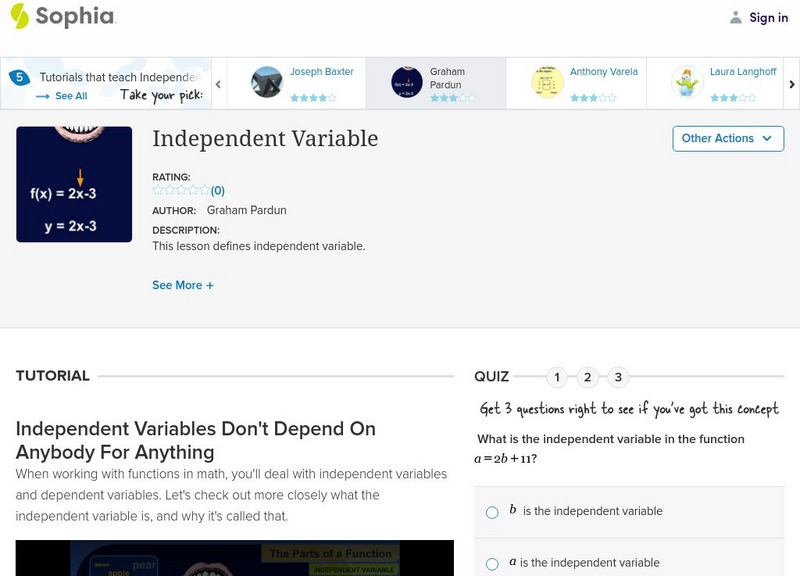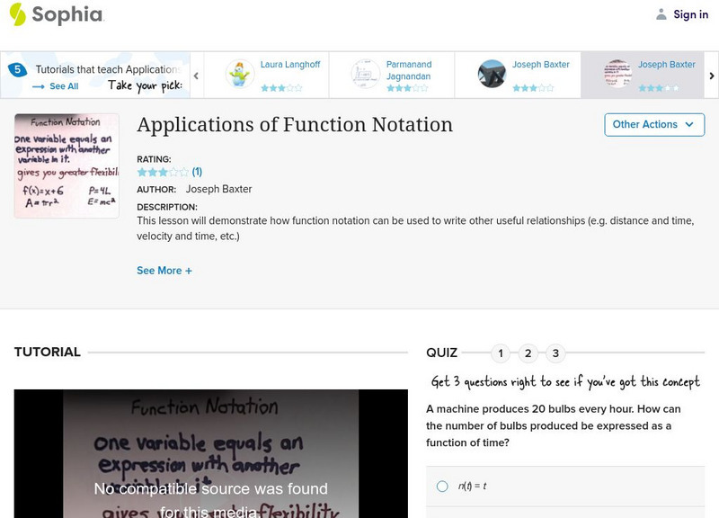 Explore how relationships such as distance and time, velocity and time, etc. can be expressed with function notation. Assess learning with a quiz. [1:52]