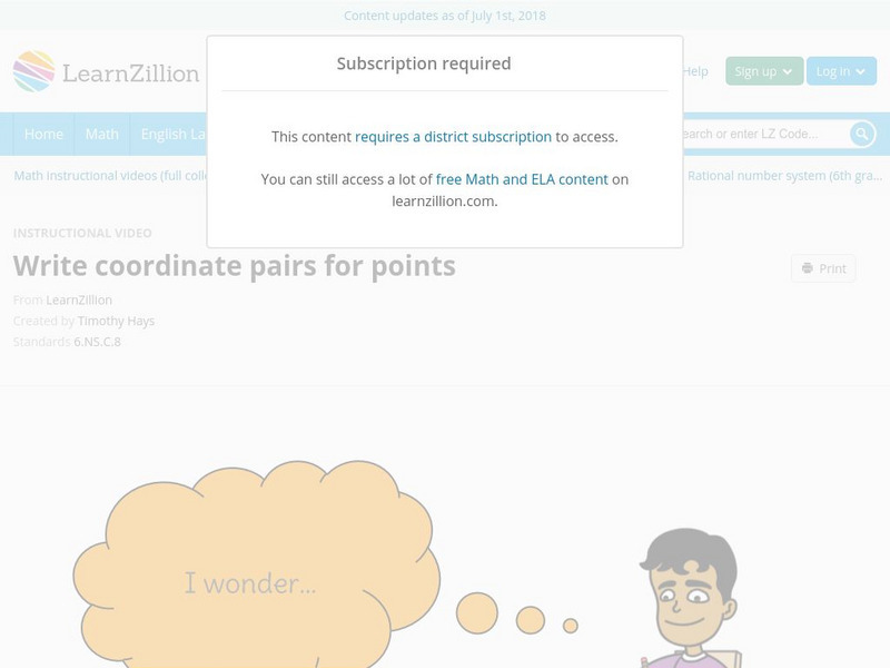 In this lesson, you will learn to write coordinate pairs for points by using a coordinate plane. [5:04]
