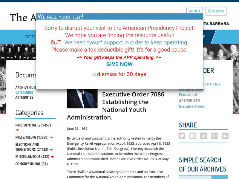 American Presidency Project: Franklin Roosevelt: Executive Order 7086