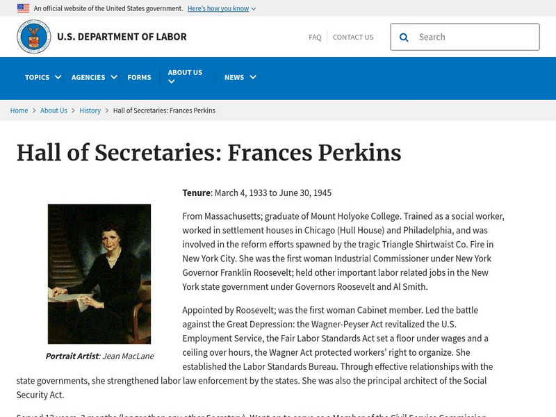 U.s. Department of Labor: Hall of Secretaries: Frances Perkins