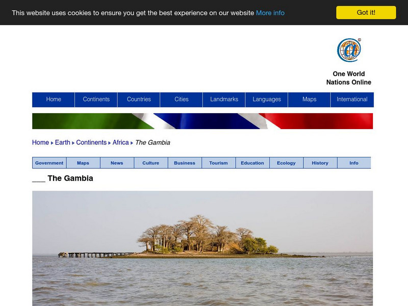 On this website, kids learn about the history, capital, flag, climate, terrain, people, economy, and population of Gambia,