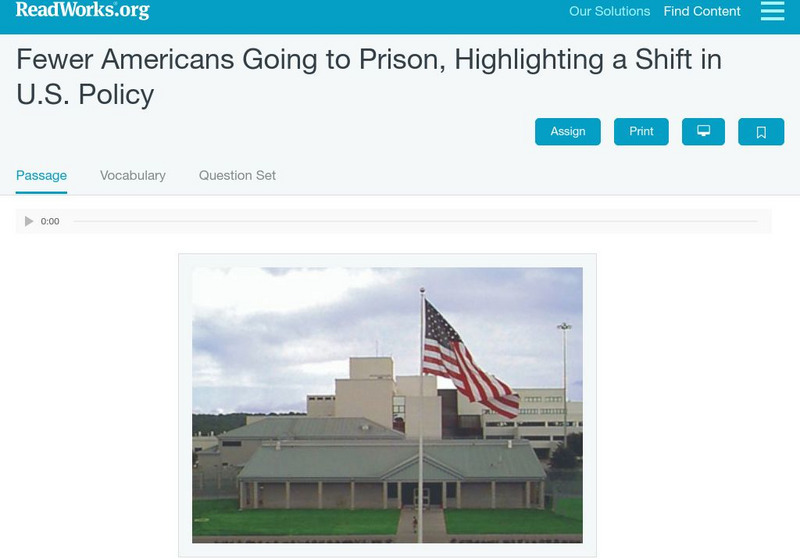 [Free Registration/Login Required] This informational text passage discusses the reasons why there are fewer Americans incarcerated in prisons than in previous years. This passage is a stand-alone curricular piece that reinforces...