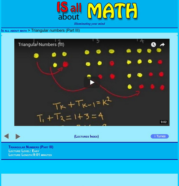 Continuing from Triangular Numbers (Part II), the podcast solves Gauss' formula for the sum of an arithmetic sequence. Recursive equations are explained heavily, and used in order to solve the Gauss formula.