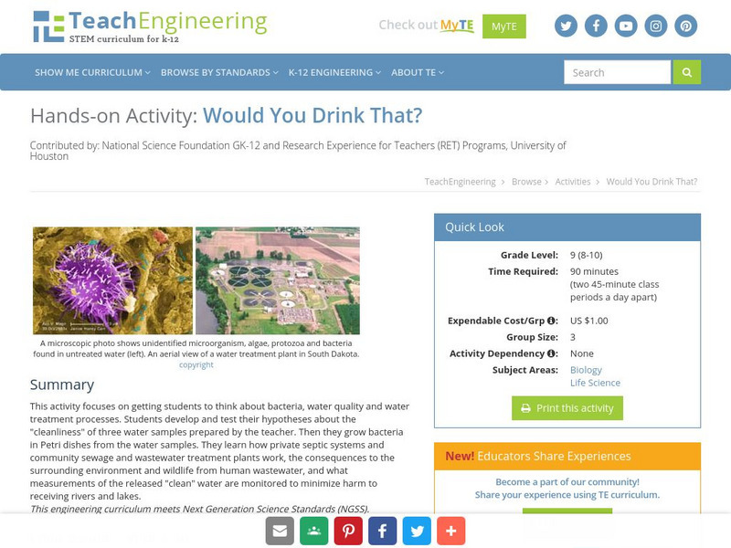 Teach Engineering: Environmental Engineering and Water Chemistry