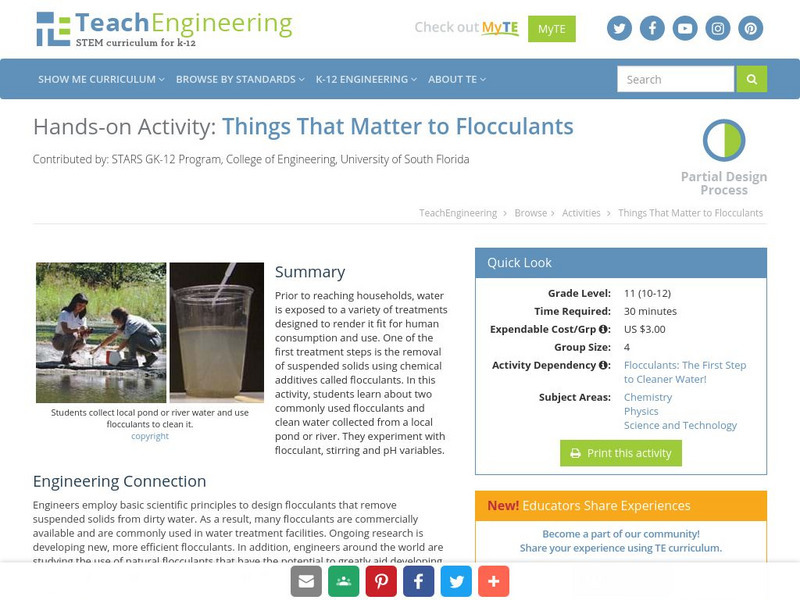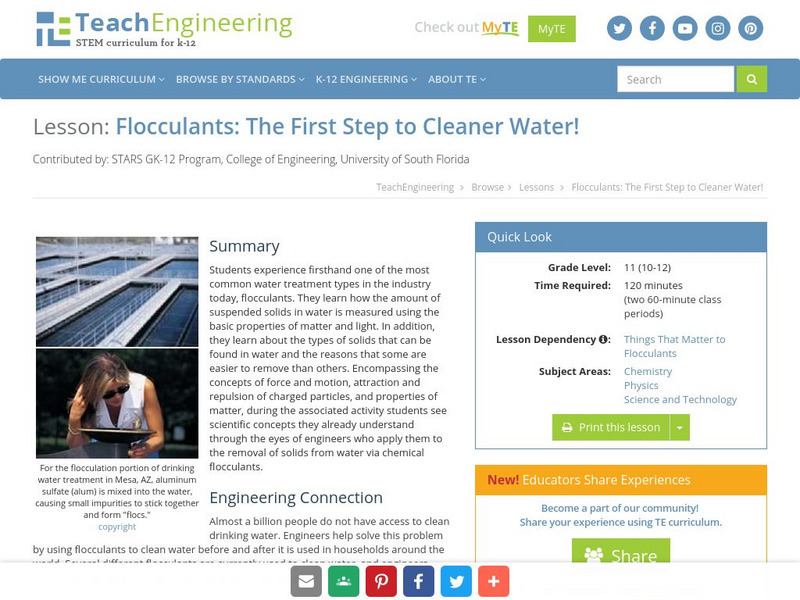 Teach Engineering: Flocculants: The First Step to Cleaner Water!