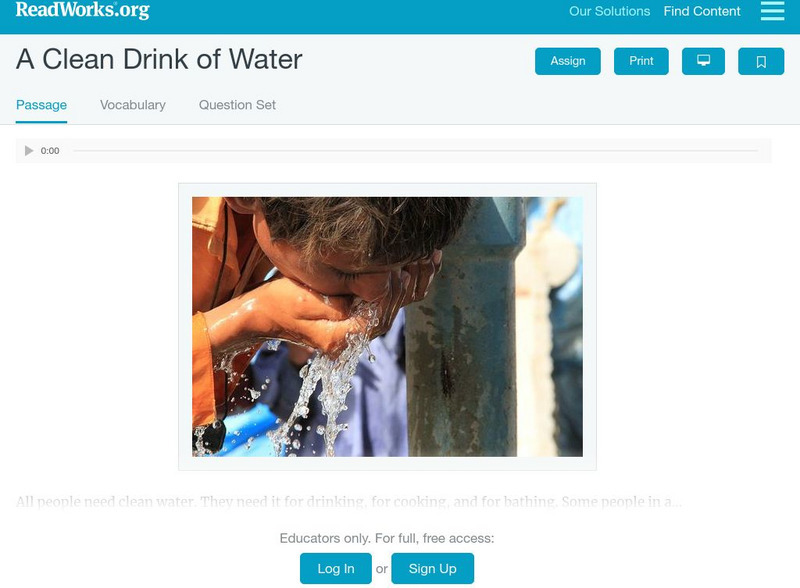 [Free Registration/Login Required] An informational about people in a South American village who needed clean water to drink. A question sheet is available to help students build skills in reading comprehension.