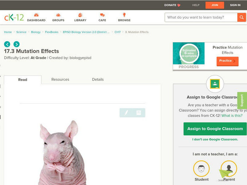 [Free Registration/Login may be required to access all resource tools.] Effects of mutations can be beneficial or they can be harmful. This tutorial describes the effects and provides examples of each.