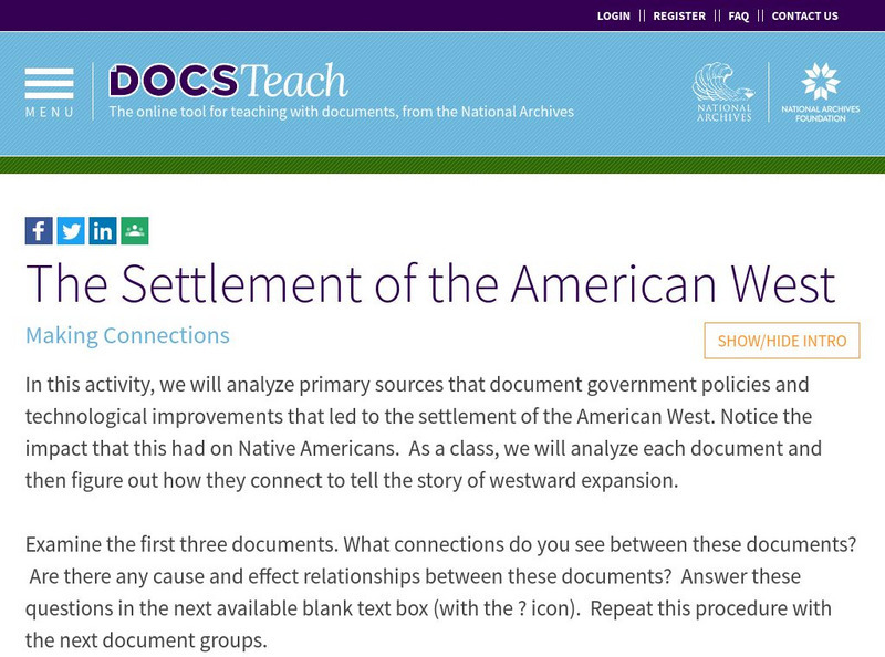 Students will analyze primary sources with an eye for cause-and-effect relationships.They will identify the roles of government policy and technological improvements in the settlement of the West, and explain their impact on Native...