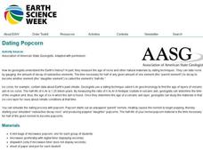 Young scholars simulate the dating process with popcorn. In this geology lesson, students discuss how geologist find the age of rocks by gauging the amount of decay of radioactive elements. They have 6 bags of popcorn and each group...