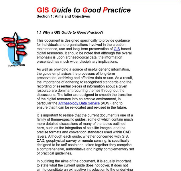Archaeology Data Service: Gis Guide to Good Practice