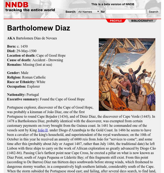 Notable Names Database|nndb: Bartholomew Diaz (Bartolomeu Dias)