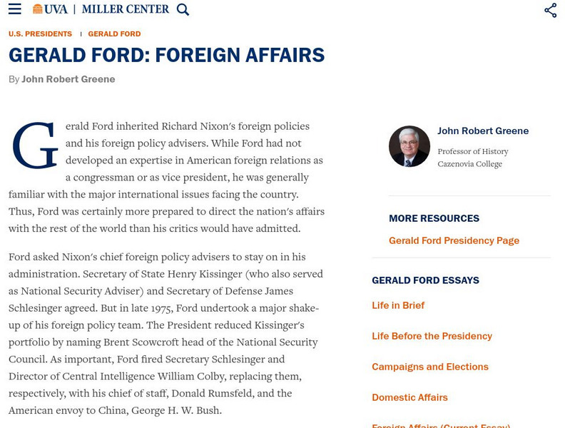 Miller Center at Uva: u.s. Presidents: Gerald Ford: Foreign Affairs