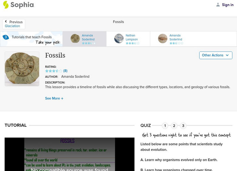 This lesson provides a timeline of fossils while also discussing the different types, locations, and geology of various fossils. [4:13]