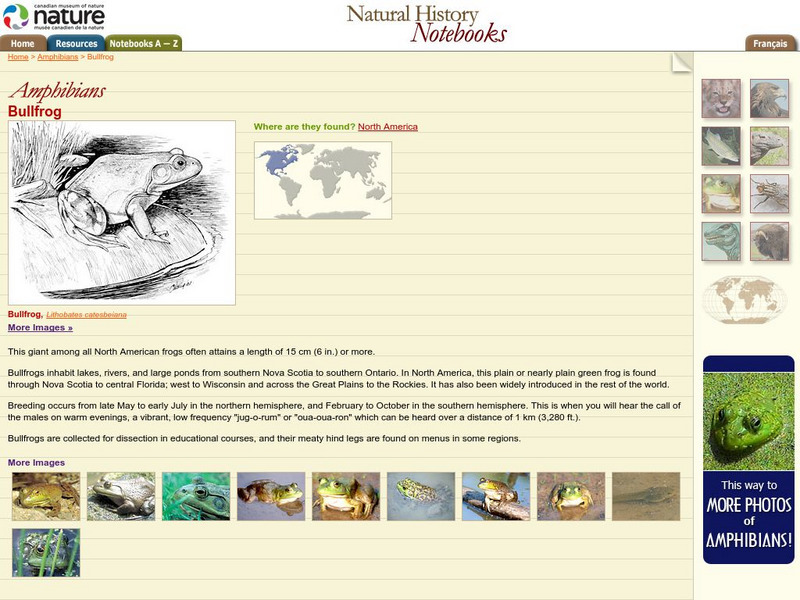 Here, the Canadian Museum of Nature details the giant of the frogs-the bullfrog.