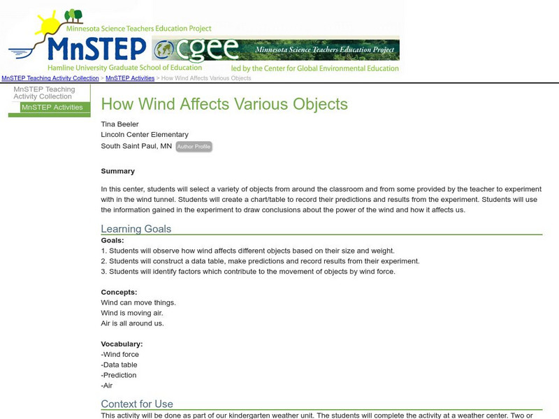 For this activity, learners experiment with various objects in a wind tunnel. Together, they record predictions and data in a class data table. Students will then use the information gained in the experiment to draw conclusions about the...