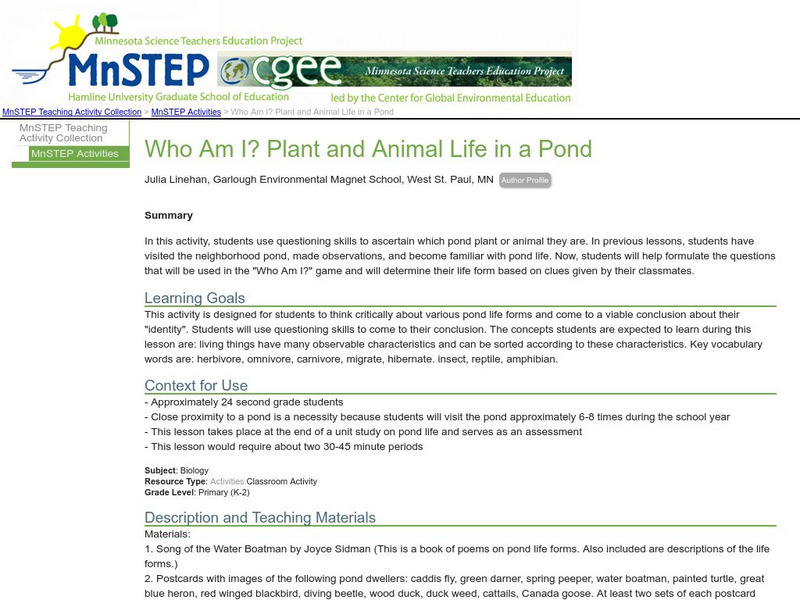 Serc: Mn Step: Who Am I? Plant and Animal Life in a Pond