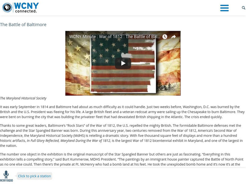 Brief overview through video and text of the Battle of Baltimore as the turning point in the War of 1812 and place where Francis Scott Key penned the lyrics to the Star Spangled Banner.