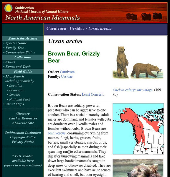 National Museum of Natural History: American Mammals: Brown Bear, Grizzly Bear