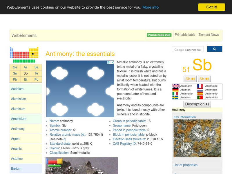 Web Elements Periodic Table: Antimony