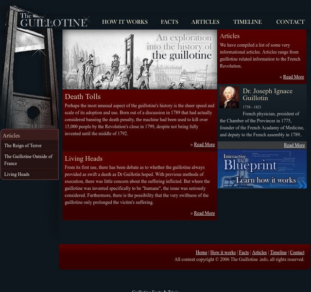 The Guillotine, a formidable and central part of the French Revolution, maintains a position of prominence in French history. This site documents the importance of this device and it's role in French culture. An interactive feature,...