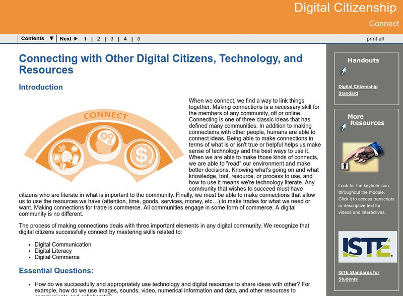 Virtual learning module on what it means to be a "digital citizen" and connect with others in today's world of digital technology and available resources. Full discussion of communication guidelines, digital literacy, and commerce in...