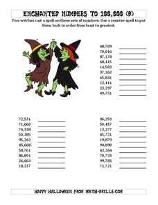 In this Halloween ordering numbers to 100,000 worksheet, students practice their math skills as they order 3 sets of 10 numbers up to 100,000.
