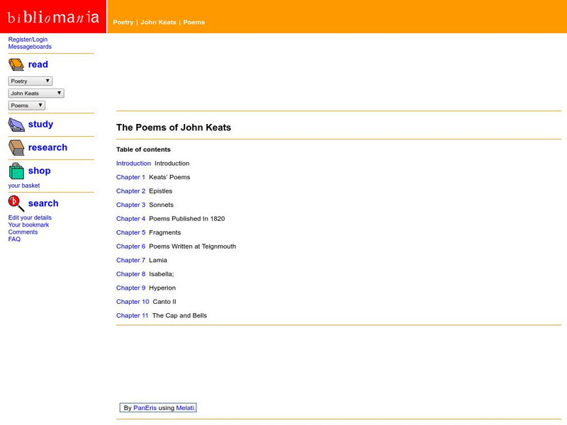 Here, read the poems, epistles, sonnets, and fragments of John Keats. Includes a four-page introduction discussing Keats' life and career.