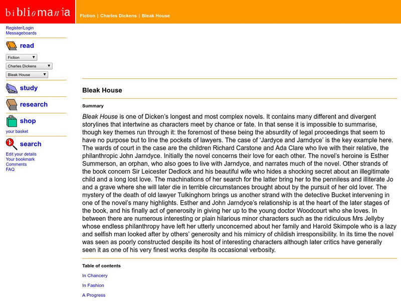 This site provides the full text of Dickens' "Bleak House." A brief summary is also included.