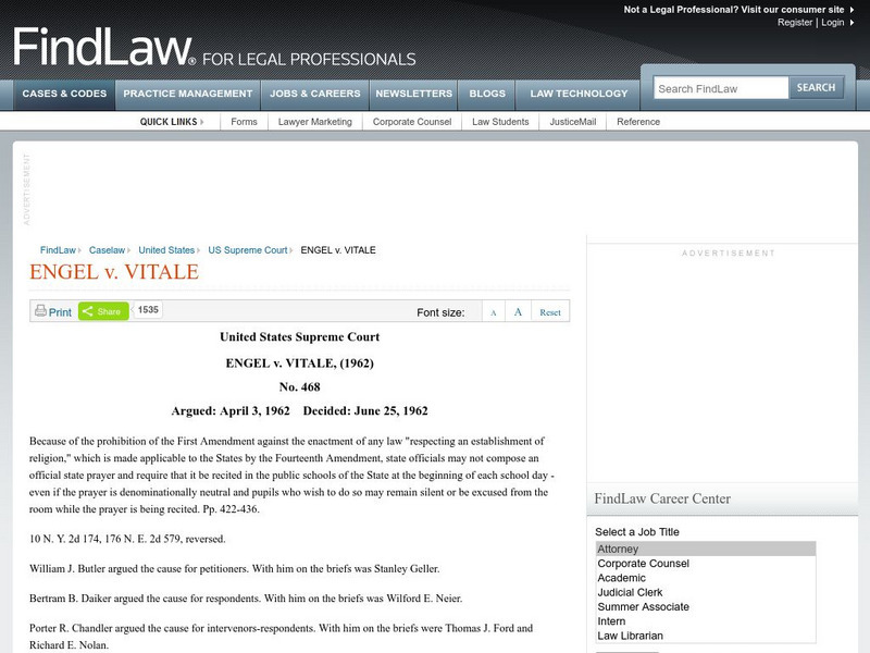 Find Law: u.s. Supreme Court: Engel v. Vitale (1962)