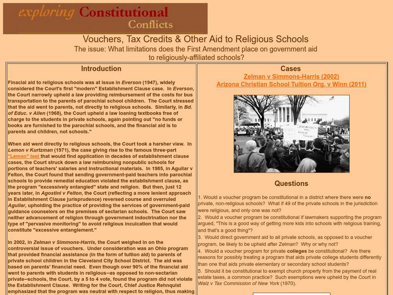 Exploring Constitutional Conflicts: Vouchers, Tax Credits & Other Aid to Religious Schools