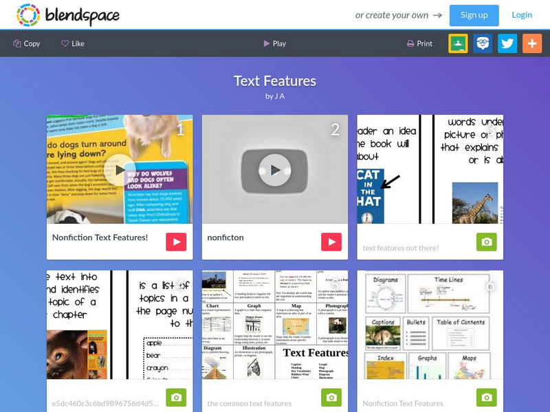 A nine-part learning module with links images and videos for use while learning about nonfiction text features.