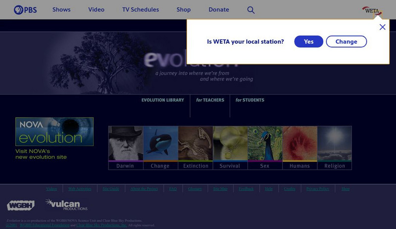 This is the PBS Evolution site, including excellent information on Darwin, Change, Extinction, Survival, Sex, Humans, and Religion.