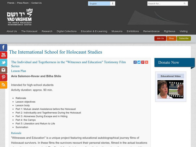 Yad Vashem: The Individual and Togetherness in the "Witness Education"