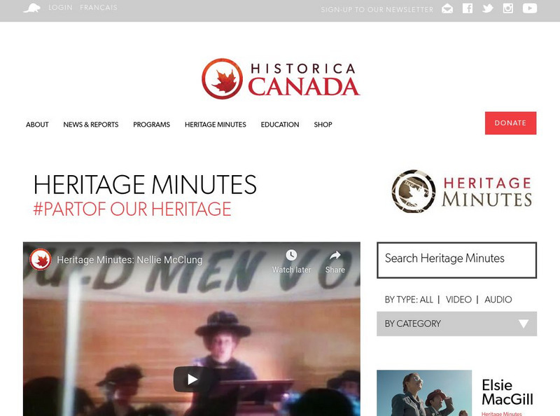 Although a good synopsis of Nellie McClung's life is presented here, the highlight is the video clip, Nellie McClung. Using the clip is a great way to jump into a lesson about McClung or female activists in general.