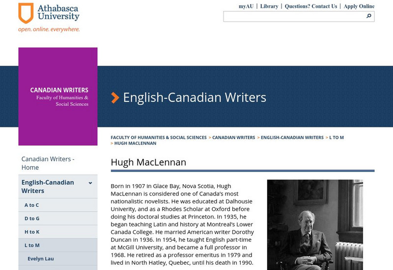 Athabasca University: Centre for Language and Literature: Hugh Mac Lennan