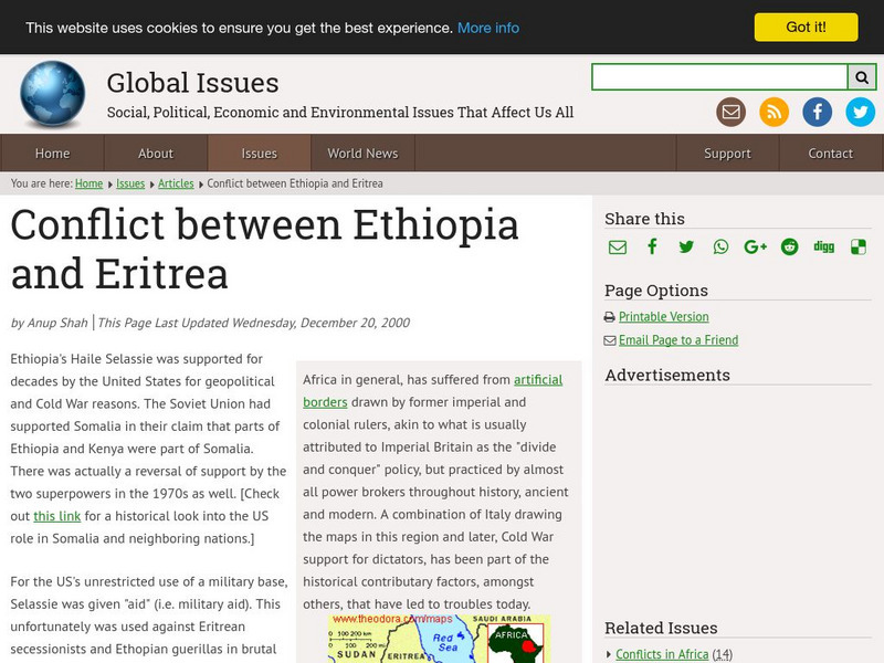 This resource provides a historical background to the conflict between Ethiopia and Eritrea in which Eritrea has gained their independence. Includes some nice maps.