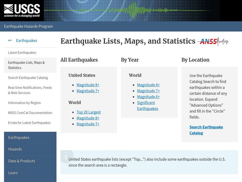 U.s. Geological Survey: Earthquake Lists, Maps, and Statistics
