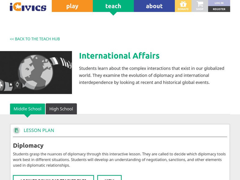 Students learn about the complex interactions that exist in our globalized world. They examine the evolution of diplomacy and international interdependence by looking at recent and historical global events. It includes games and...