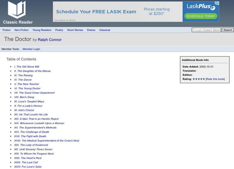 This site features the author Ralph Connor including the full text of 11 novels including The Sky Pilot and Glengarry Schooldays.
